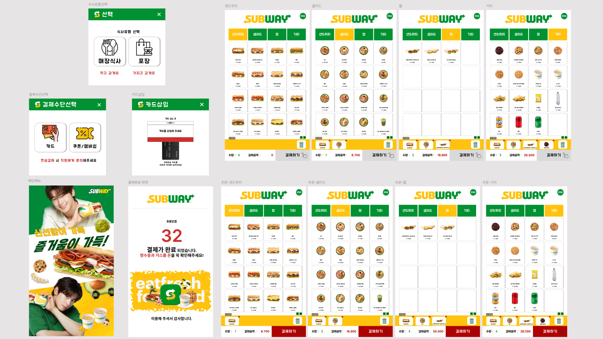 서브웨이 매장에서 샌드위치를 주문하기 위한 고객들이 사용할 키오스크 화면 제작