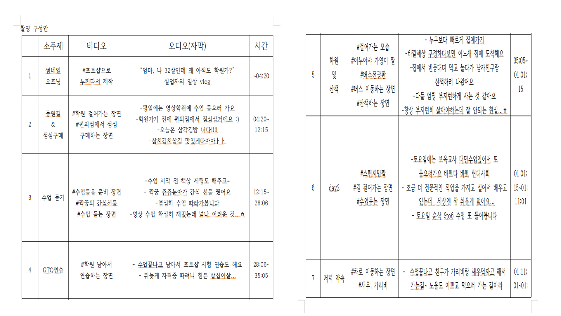 32세 실업자의 일상생활을 가감없이 보여주고 바쁘게 공부하고 먹고 노는 평범한 생활을 공유하고자하였다.